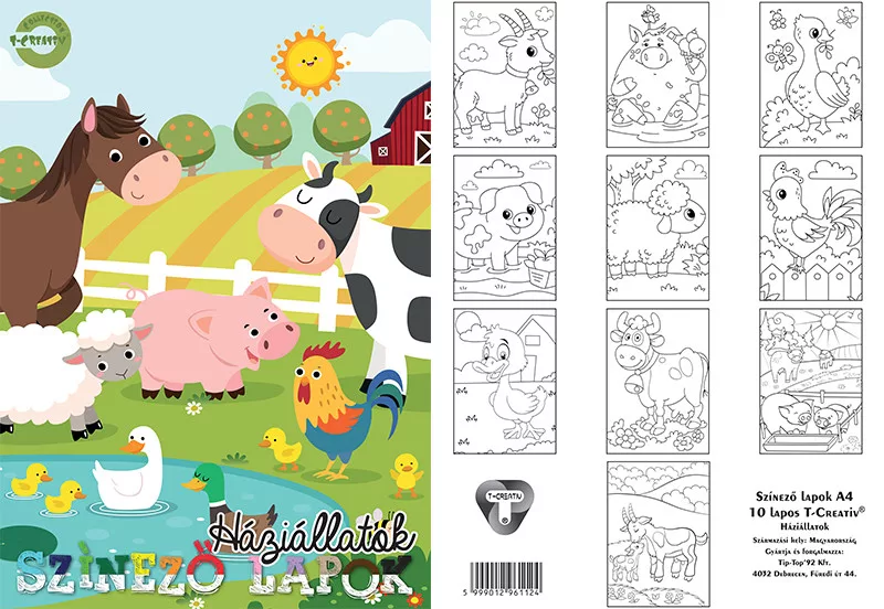 Tedd vidámmá a színezést a T-Creativ "Háziállatok" színező lapjaival! A csomag 10 darab A4-es méretű, fehér papírlapot tartalmaz, amelyekre kedves farmállat-motívumok kerültek – ló, tehén, malac, kacsa és barátaik várják, hogy színt kapjanak. A részletgazdag, mégis egyszerű vonalrajzok ösztönzik a finommotorika fejlődését, és remek alapot adnak zsírkréta, filctoll vagy színes ceruza használatához. Engedd, hogy a gyerekek saját tanyavilágot alkossanak!