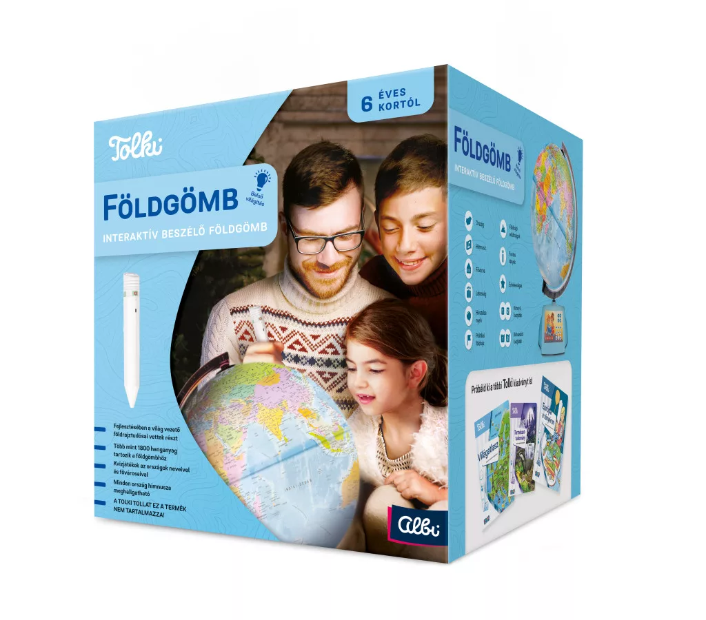 A Tolki Interaktív Földgömb a klasszikus földrajzi térképet ötvözi a hangalapú digitális tudásbázissal. Érintésre megszólal, és több mint 1800 hangfelvétellel mesél a kontinensekről, országokról, fővárosokról, zászlókról, sőt még a himnuszokat is lejátsza. A 6 éven felüli felfedezők játékosan tanulhatnak földrajzot, kultúrát és nyelveket, miközben valódi világjáró élményt kapnak saját szobájukban.