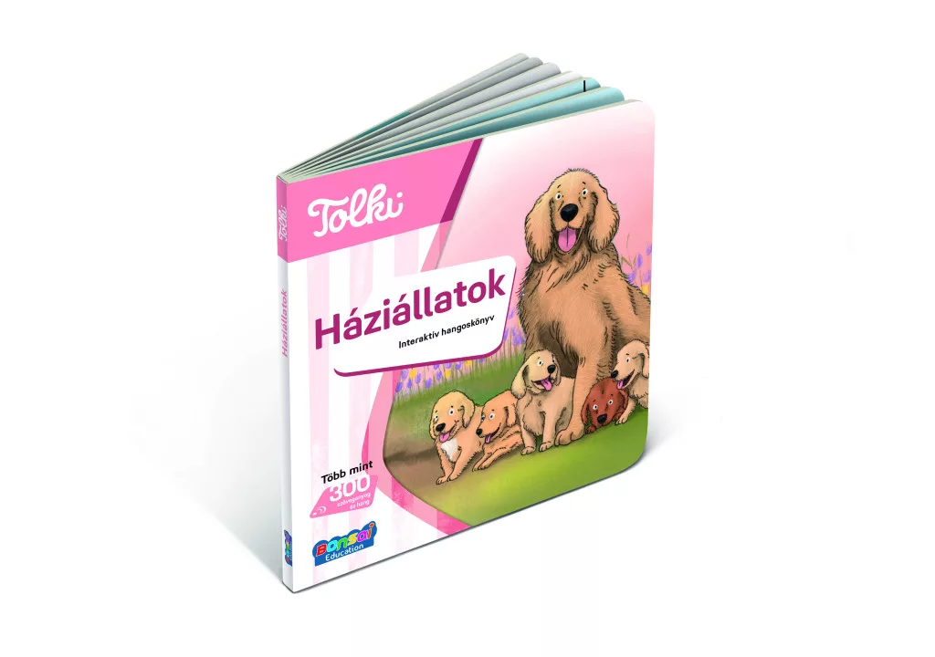 A Tolki Interaktív hangoskönyv – Háziállatok a legkisebb állatrajongók számára készült, strapabíró kartonlapokra nyomtatott képeskönyv, amely a Tolki okostollal életre kel. A több mint 300 magyar nyelvű hang, dallam és szöveg a könyv bármely pontján érintve szólal meg, így játékosan fejleszti a szókincset, hallás utáni megértést és empátiát. Kutyusok, cicák, nyuszik és társaik mutatkoznak be, miközben a gyerekek interaktív felfedezőútra indulnak a háziállatok világába.