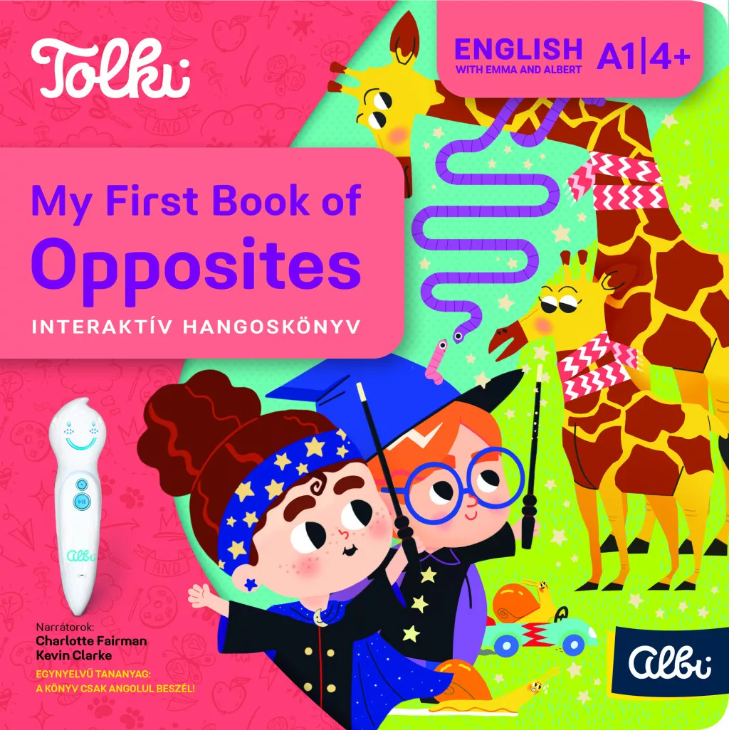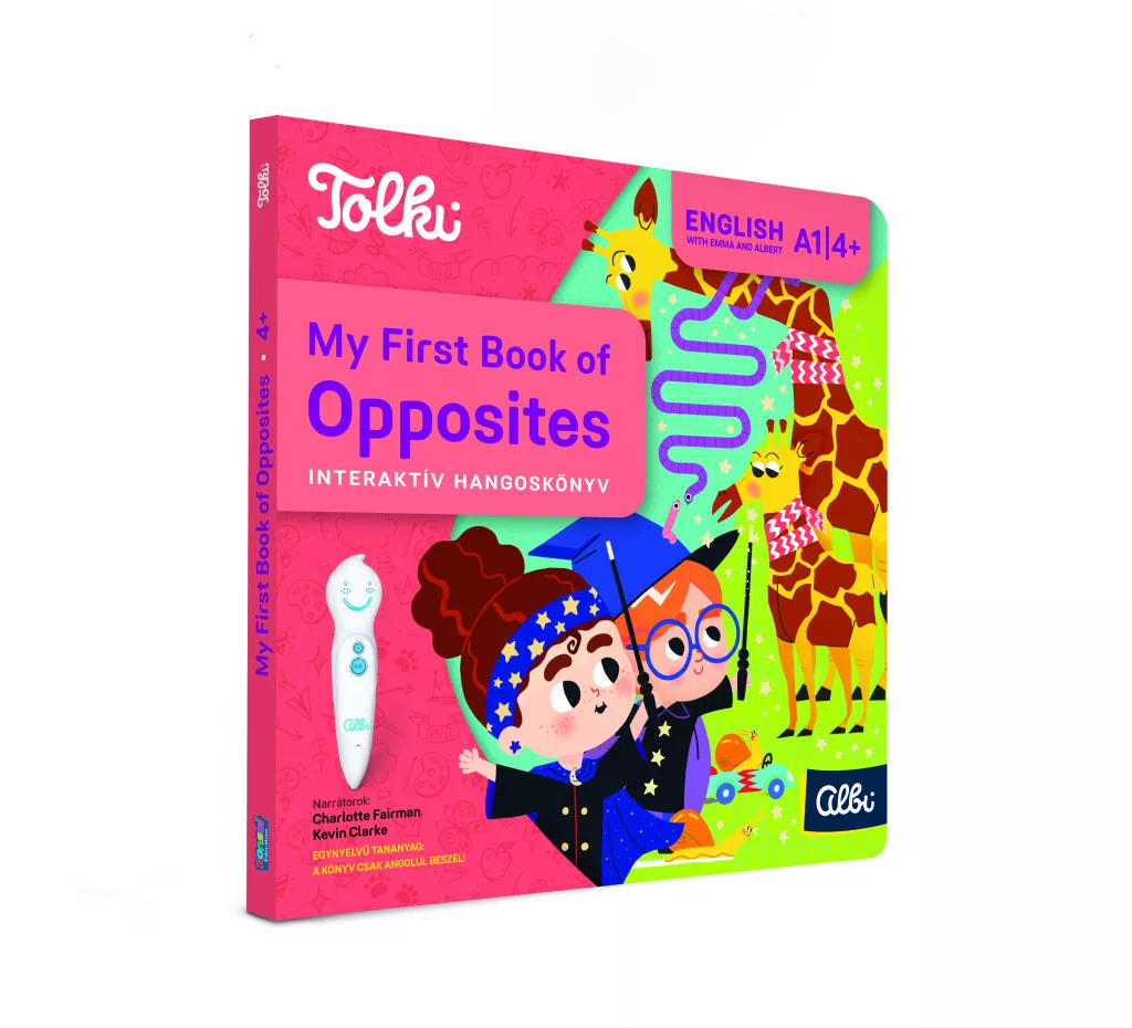 A Tolki Interaktív hangoskönyv – My First Book of Opposites játékosan vezeti be a 4 évesnél idősebb gyerekeket az angol nyelv alapvető ellentétpárjaiba. A vastag, strapabíró kartonlapokra rejtett intelligens kódok az interaktív Tolki toll érintésére azonnal megszólalnak, így a kicsik anyanyelvi kiejtéssel hallhatják a szavakat, mondatokat, dalokat és hangjátékokat. A könyv A1 szintű szókincset épít, miközben színes illusztrációi folyamatos felfedezésre ösztönöznek.