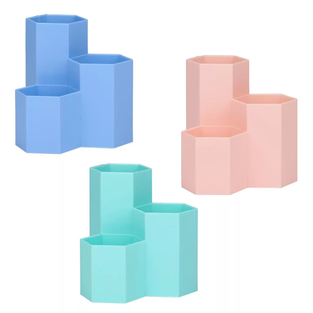A stabil műanyagból készült hatszögletű forma nem borul fel, a fokozatos rekeszeknek köszönhetően a különböző hosszúságú eszközök jól elkülönülnek, így egy mozdulattal megtalálod, amire szükséged van. Kezdőknek és haladóknak egyaránt ideális, használata egyszerű, nem igényel semmilyen szerelést vagy karbantartást. Ajánlott korosztály: iskolástól irodai felhasználóig bárki.
