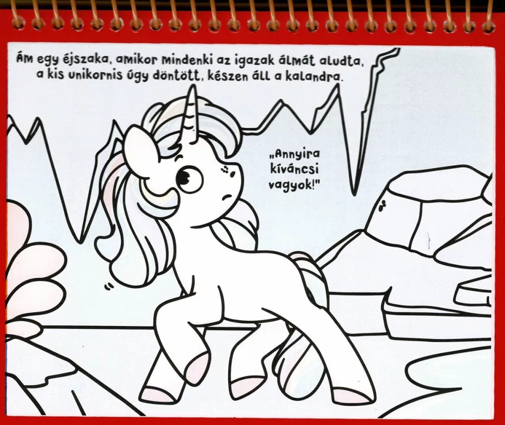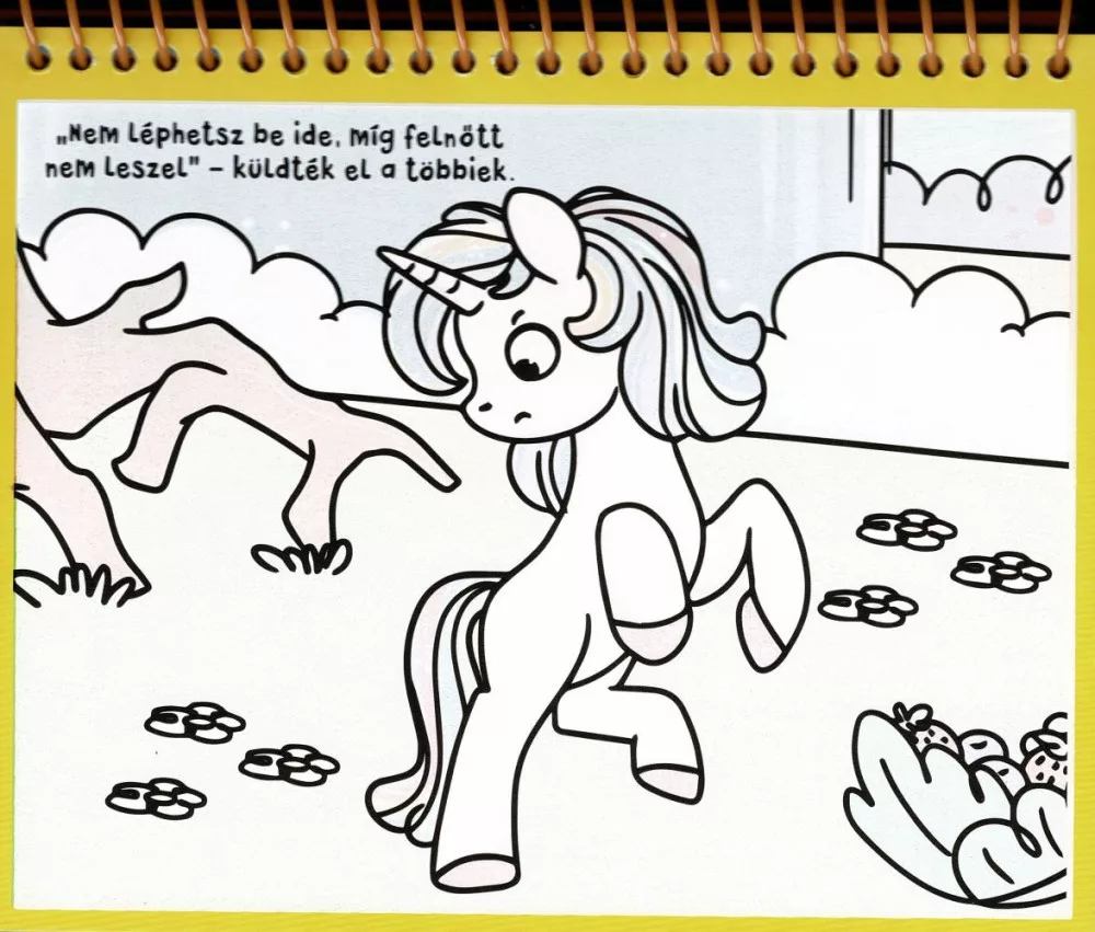 • Spirálkötésű vízfestő kifestőkönyv unikornis témájú jelenetekkel