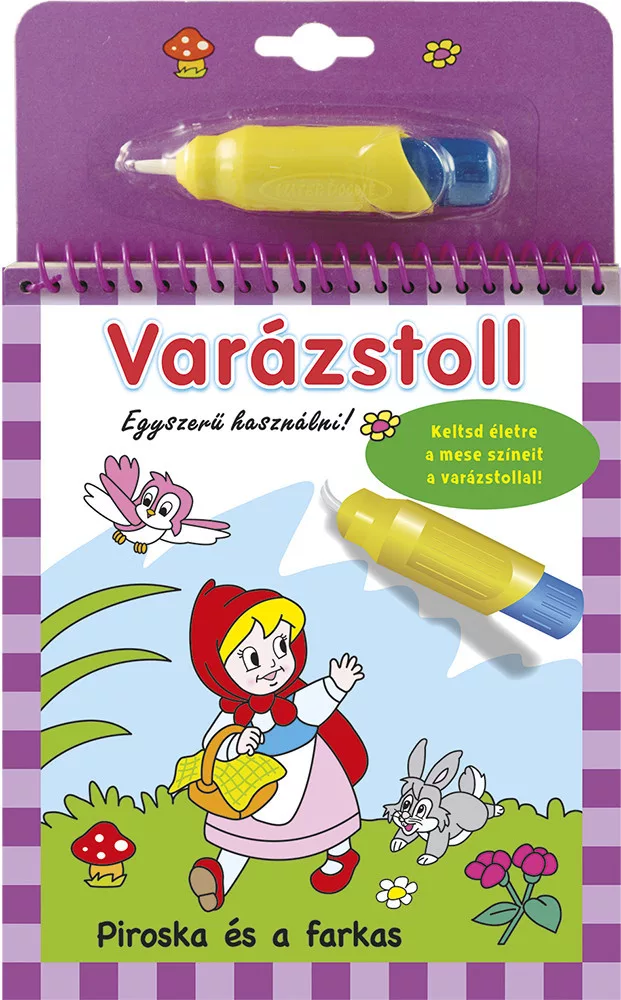 A Varázstoll – Piroska és a farkas egy spirálkötésű vízfestő kifestő, amelyben a klasszikus mese jelenetei csak arra várnak, hogy életre keltsd őket. A mellékelt, újratölthető víztoll hegyét elég vízbe mártani, majd a fehér felületeken végighúzni – a speciális, vízre aktiválódó festékréteg azonnal elővarázsolja a rejtett színeket. A vastag kartonlapok és a strapabíró spirálkötés gondoskodnak róla, hogy a könyv sokszor újrahasználható legyen, míg a víz alapú technológia baleset- és foltmentes alkotást kínál már a legkisebb művészeknek is.
